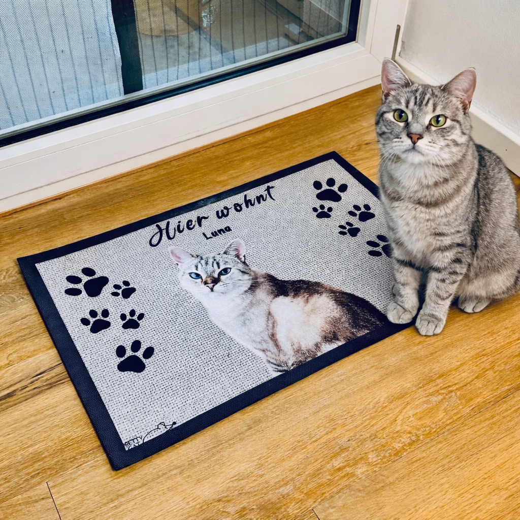 Hier wohnt euer Glück: Die Personalisierte Fußmatte mit Katze