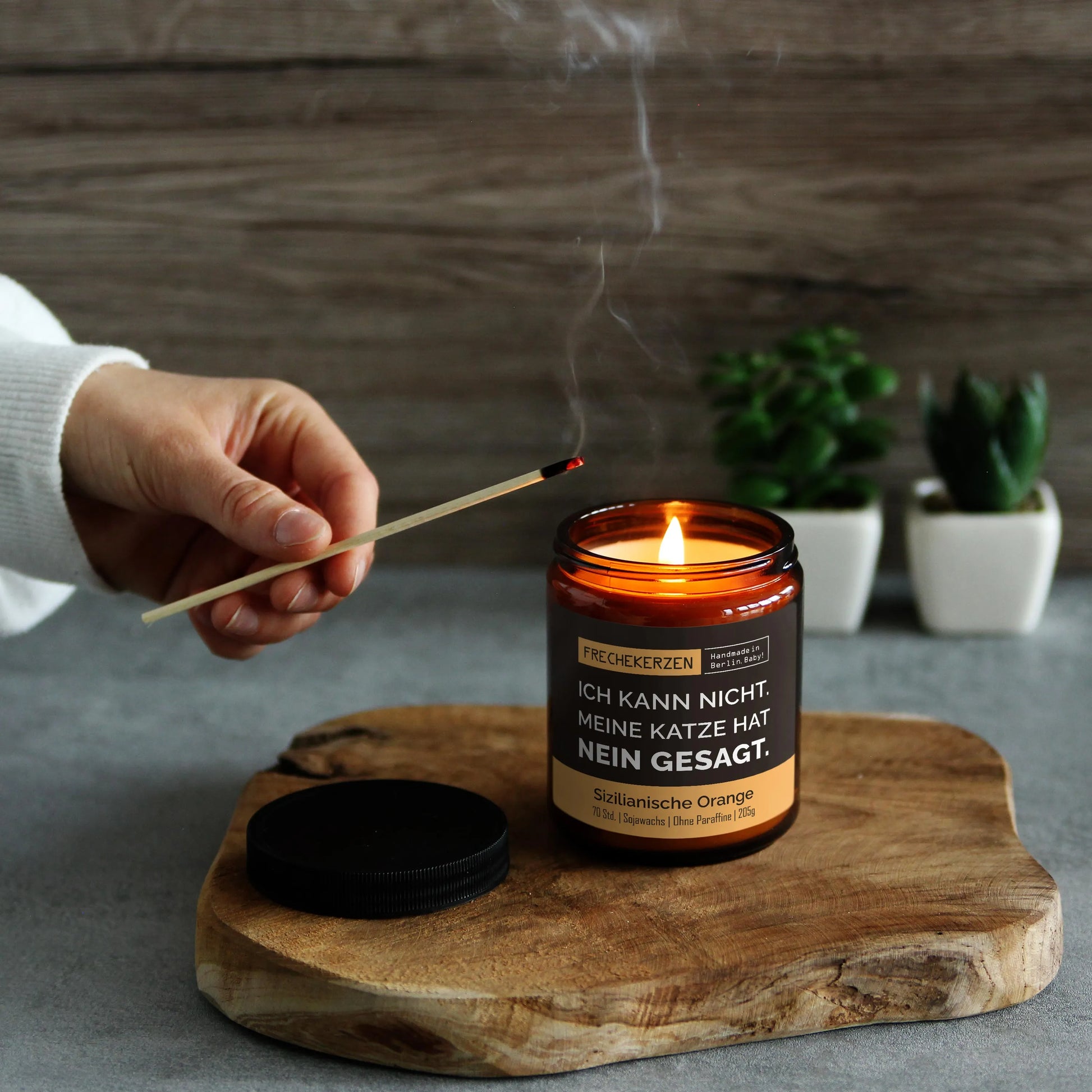 Das wiederverschließbare Glas bewahrt den Duft perfekt und der freche Spruch für Katzenfans macht die Kerze zu einem echten Blickfang.