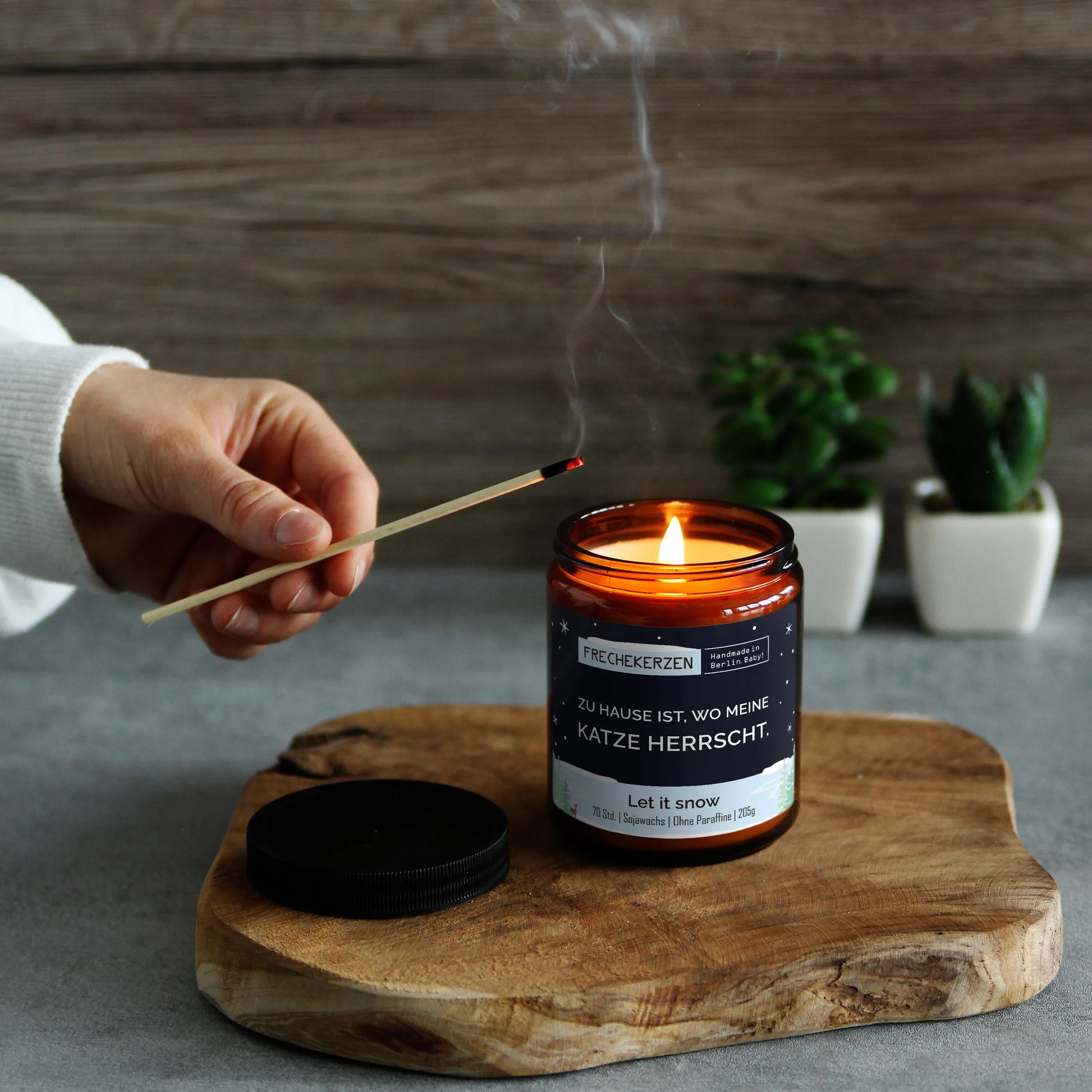 Das wiederverschließbare Glas bewahrt den Duft perfekt und der freche Spruch für Katzenfans macht die Kerze zu einem echten Blickfang.